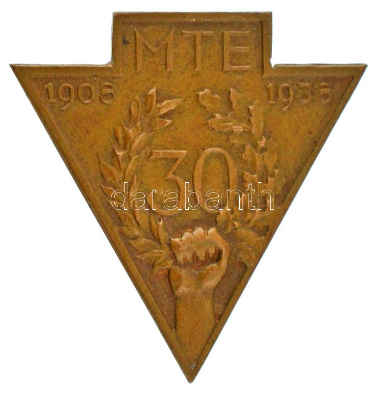 1938. "Munkás Testedző Egyesület - MTE 1908-1938" bronz gomb... https://www.darabanth.com/de/472-Fernauktion/472.0/Numismatik/Sportpreise-und-Sportgedenkmedaillen~2000013/1938-Munkas-Testedzo-Egyesulet-MTE-1908-1938-bronz-gomblyukjelveny-29x28mm-TAU~II3042881