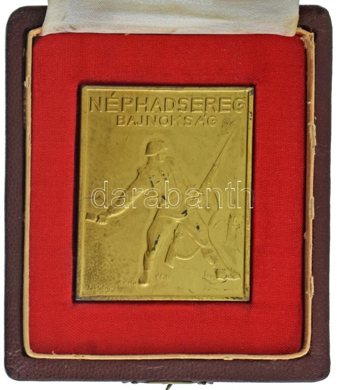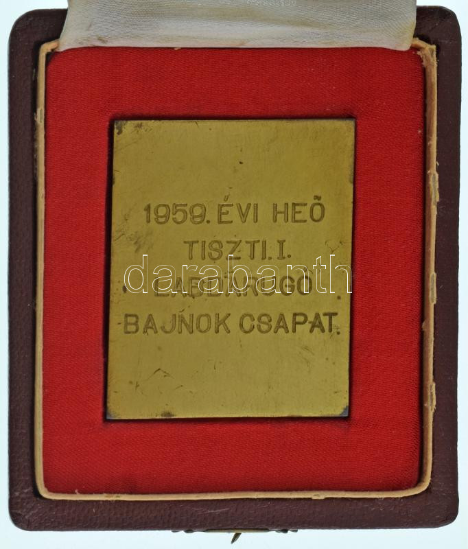 1959. "Néphadsereg Bajnokság" egyoldalas bronz díjplakett, hátoldalán "1959. évi heő. tiszti I. labdarúgó bajnokcsapat" gravírozással, eredeti tokban (50x59mm) T:XF