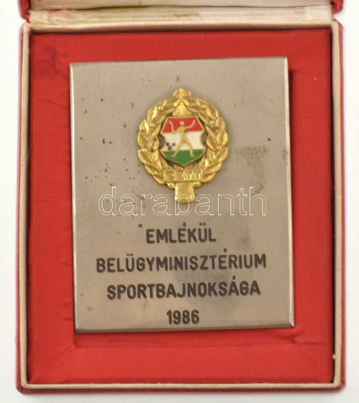 1986. "Emlékül Belügyminisztérium Sportbajnoksága 1986" műgy... https://www.darabanth.com/de/472-Fernauktion/472.0/Numismatik/Sportpreise-und-Sportgedenkmedaillen~2000013/1986-Emlekul-Belugyminiszterium-Sportbajnoksaga-1986-mugyantas-aranyozott-ratetes-emle~II2993770