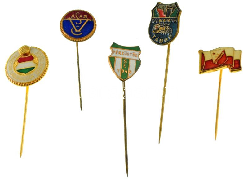 Beschreibung: 5db-os labdarúgás témájú jelvénytétel, benne MLSZ (Magyar Labdarúgó Szövetség), FK Vojvodina, Vasas SC, Pénzügyőr SE, TJ Lokomotiva Tábor T:AU,XF