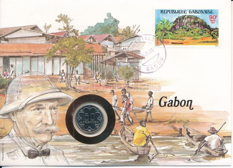 Gabon 1981. 50 Francs in envelope with stamp and cancellation, with German description C:UNC