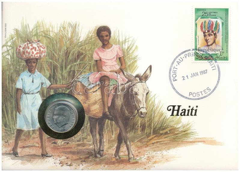 Haiti 1975. 10 Centimes in envelope with stamp and cancellation, with German description C:UNC