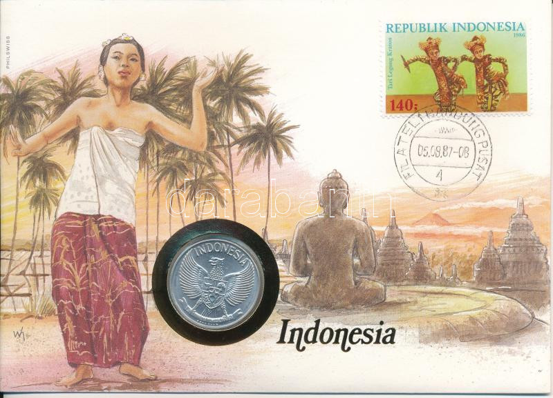 Indonézia 1961. 50s Al, felbélyegzett borítékban, bélyegzéssel, német nyelvű leírással T:AU Indonesia 1961. 50 Sen Al in envelope with stamp, with German description C:AU