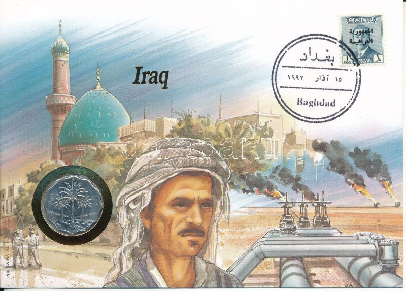 Iraq 1971. 10 Fils in envelope with stamp and cancellation, with German language description C:AU