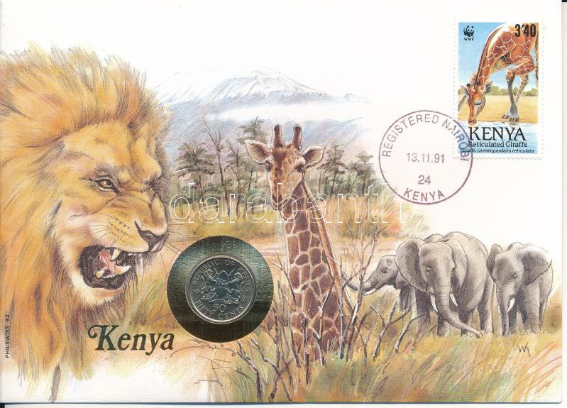 Kenya 1980. 50c Cu-Ni felbélyegzett borítékban, bélyegzéssel, német nyelvű leírással T:UNC