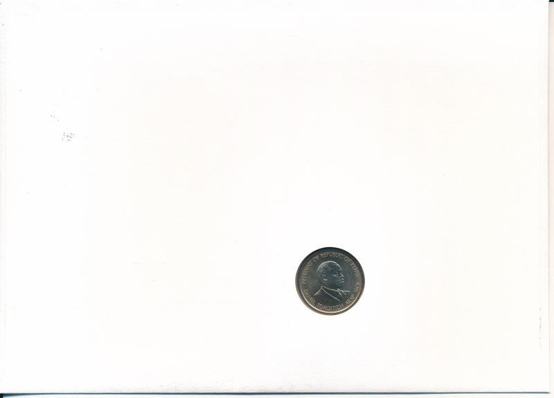 Kenya 1980. 50 Cents Cu-Ni in envelope with stamp and cancellation, with German description C:UNC
