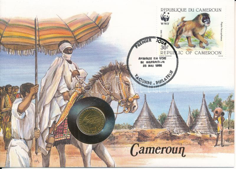 Közép-afrikai Államok 1983. 5Fr Al-bronz "Kamerun" érmés borítékban, Egyenlítői Guinea bélyeggel és bélyegzéssel, német nyelvű leírással T:UNC Central African States 1983. 5 Franc Al-bronze "Cameroon" envelope with stamp cancellation and prospectus in GermanC:UNC