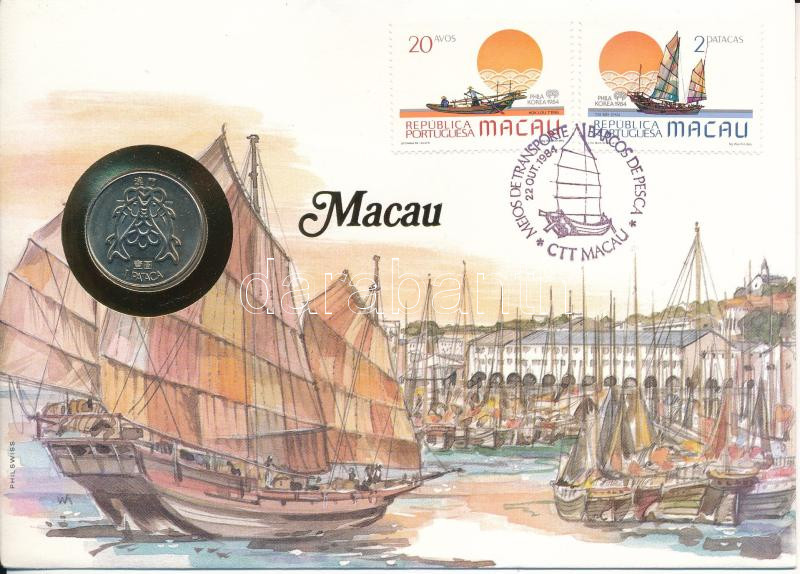 Makaó 1983. 1P felbélyegzett borítékban, alkalmi bélyegzéssel T:UNC Ma... https://www.darabanth.com/de/472-Fernauktion/472.0/Numismatik/Umschlage-mit-Munzen-und-Banknoten~2000005/Makao-1983-1P-felbelyegzett-boritekban-alkalmi-belyegzessel-TUNC-Macau-1983-1-Pataca-in-en~II3141583
