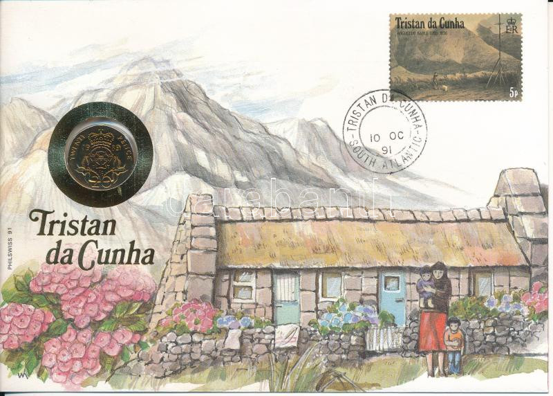 Nagy-Britannia / Tristan da Cunha 1989. 20p felbélyegzett borítékban, bélyegzéssel, német nyelvű leírással T:UNC patina Great Britain / Tristan da Cunha 1989. 20 Pence in envelope with stamp and cancellation, with German description C:UNC patina
