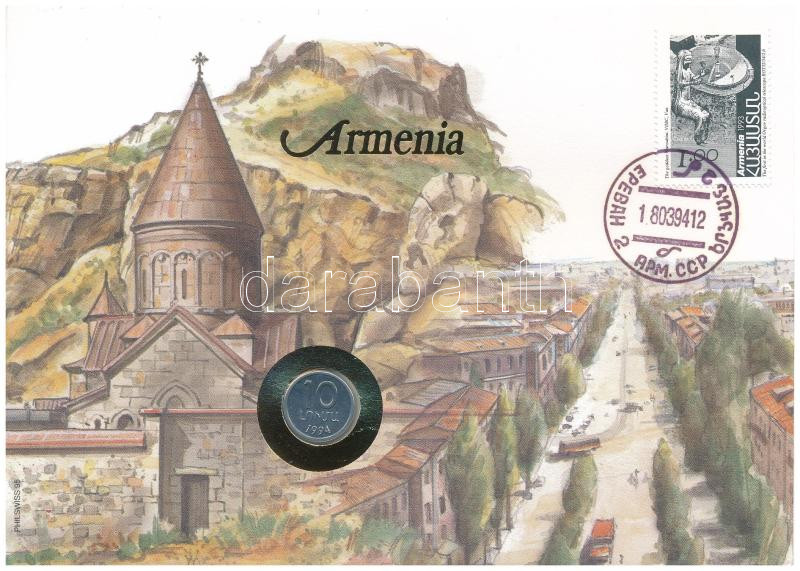 Örményország 1994. 10l Al felbélyegzett borítékban, bélyegzéssel, német nyelvű tájékoztatóval T:UNC Armenia 1994. 10 Luma Al in envelope with stamp, cancellation and a prospectus in german C:UNC