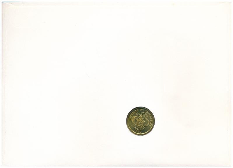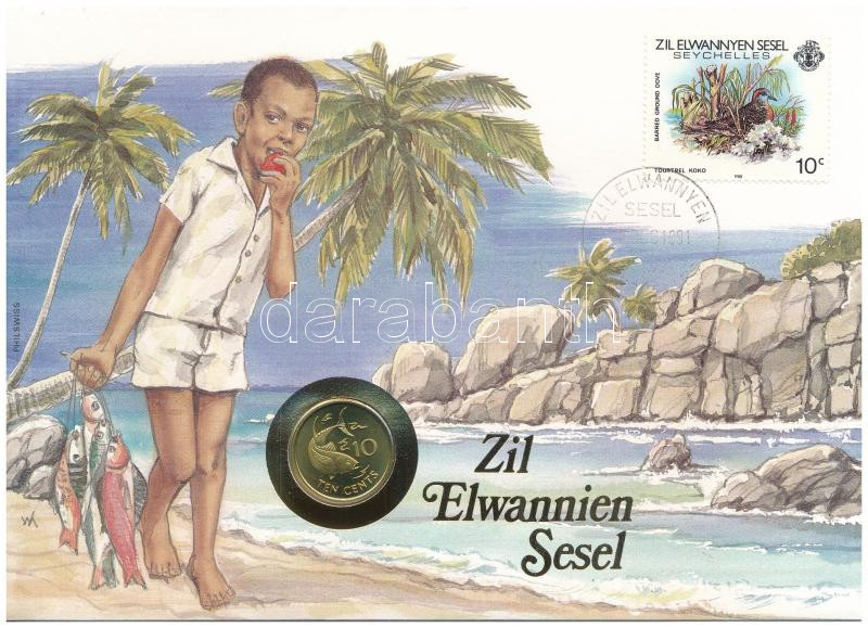 Seychelles-szigetek 1990. 10c felbélyegzett borítékban, bélyegzéssel, német nyelvű leírással T:UNC Seychelles 1990. 10 Cents in envelope with stamp and cancellation, with German description C:UNC