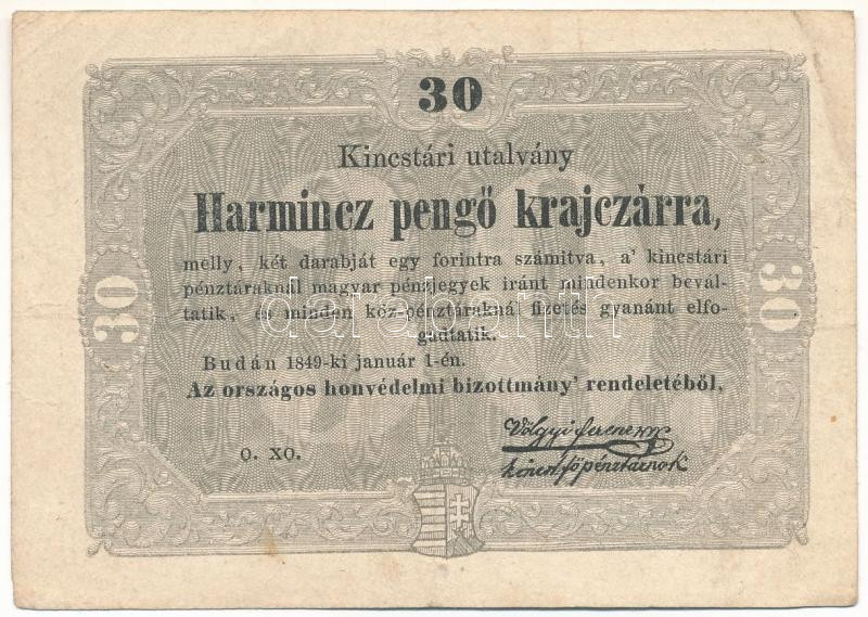 1849. 30kr "Kossuth bankó" T:F Adamo G103 https://www.darabanth.com/de/472-Fernauktion/472.0/Numismatik/Ungarische-Banknoten~2000008/1849-30kr-Kossuth-banko-TF-Adamo-G103~II3195225