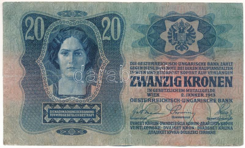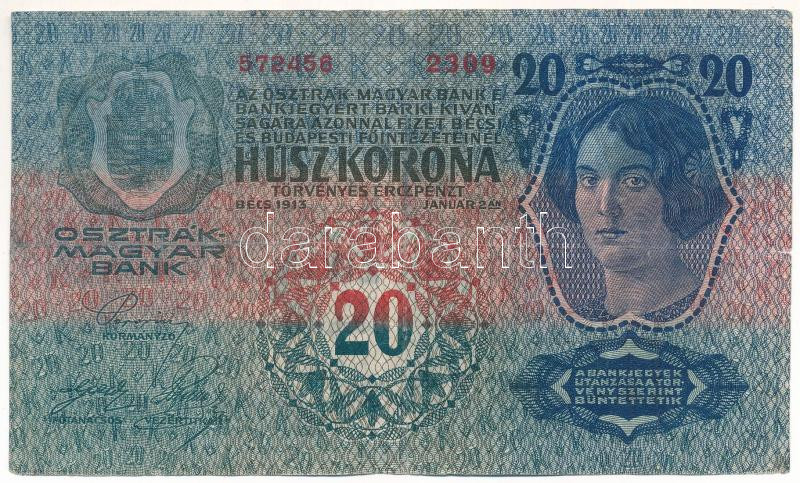 Beschreibung: 1913. 20K "2309 572456" felülbélyegzés nélkül T:F