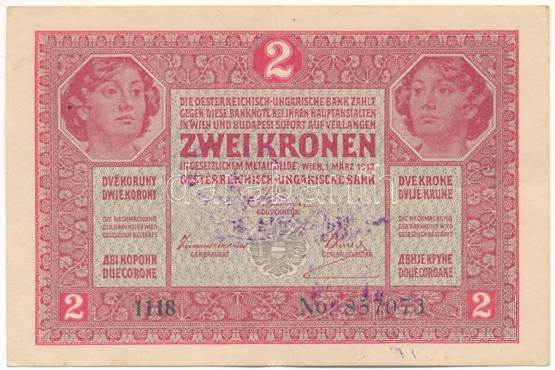 1917. 2K "1118", hamis "Versecz THJF város Rendőrkapitá... https://www.darabanth.com/de/472-Fernauktion/472.0/Numismatik/Ungarische-Banknoten~2000008/1917-2K-1118-hamis-Versecz-THJF-varos-Rendorkapitanysaga-felulbelyegzessel-TF-szep-e~II3199055