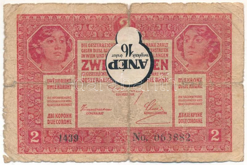 1917. 2K "1439", "A Nép megjelenik 16 órakor" feli... https://www.darabanth.com/de/472-Fernauktion/472.0/Numismatik/Ungarische-Banknoten~2000008/1917-2K-1439-A-Nep-megjelenik-16-orakor-feliratu-raragasztott-cetlivel-TG-szakadas-anya~II3199074