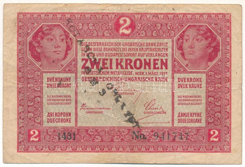 Beschreibung: 1917. 2K jugoszláv felülbélyegzéssel és kézzel írt írással T:F,VG