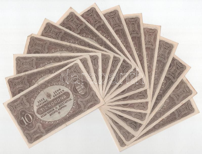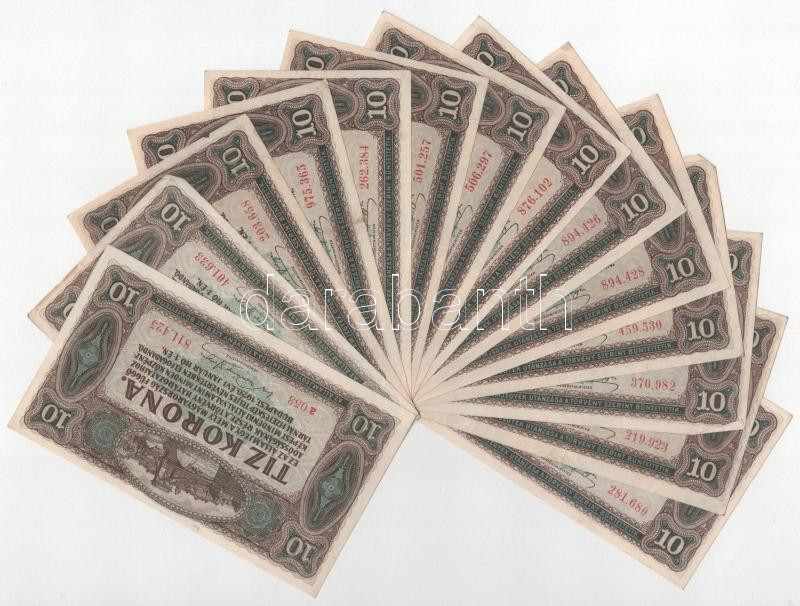Beschreibung: 1920. 10K (14x) közte közeli sorszámok is T:VF,F mind szép papír