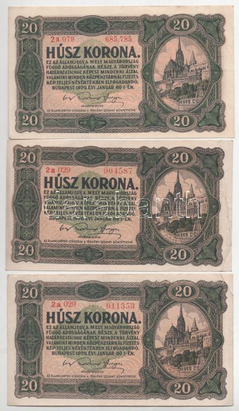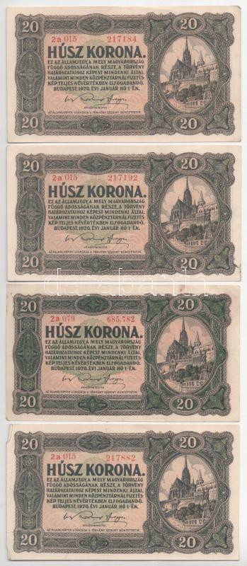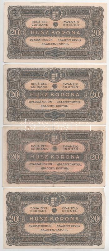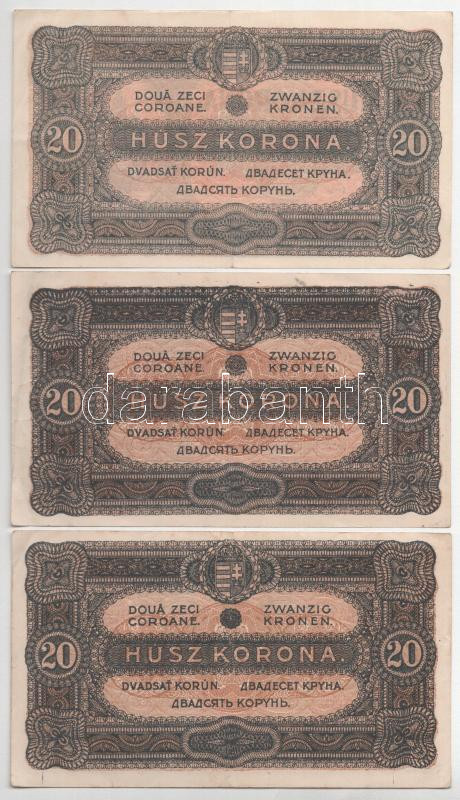 Beschreibung: 1920. 20K (7x) közte közeli sorszámok T:VF,F szép papír Adamo K21