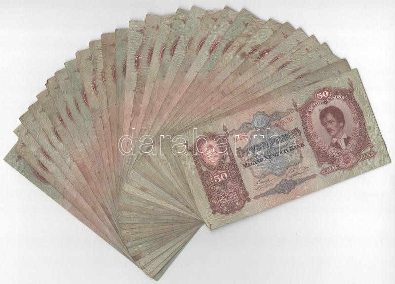 1932. 50P (30x) T:F,VG Adamo P14 https://www.darabanth.com/de/472-Fernauktion/472.0/Numismatik/Ungarische-Banknoten~2000008/1932-50P-30x-TF-VG-Adamo-P14~II3201627