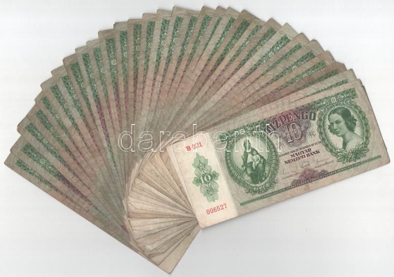 1936. 10P (30x) mind különféle sorozatszámmal "B 021 - B 999"... https://www.darabanth.com/de/472-Fernauktion/472.0/Numismatik/Ungarische-Banknoten~2000008/1936-10P-30x-mind-kulonfele-sorozatszammal-B-021-B-999-TF-VG--Adamo-P9~II3189919