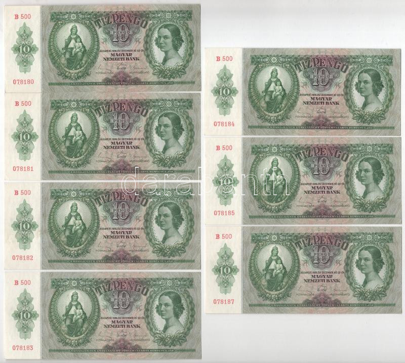 1936. 10P (7x) egy kihagyással sorszámkövetők: "B 500 078180 - B ... https://www.darabanth.com/de/472-Fernauktion/472.0/Numismatik/Ungarische-Banknoten~2000008/1936-10P-7x-egy-kihagyassal-sorszamkovetok-B-500-078180-B-500-078187-TXF-F-szep-papir~II3194909