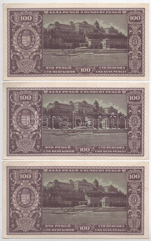 Beschreibung: 1945. 100P (3x) sorszámkövetők "E 244 042498 - E 244 042500" T:AU sarokhajlások