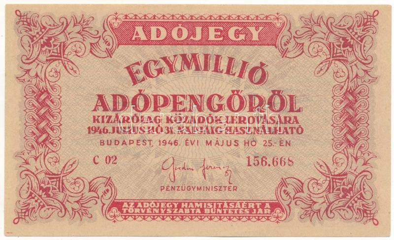 Beschreibung: 1946. 1.000.000AP 6 jegyű sorszámmal, hátoldalon fordított címerrel és "amelyeknek" elírással T:AU