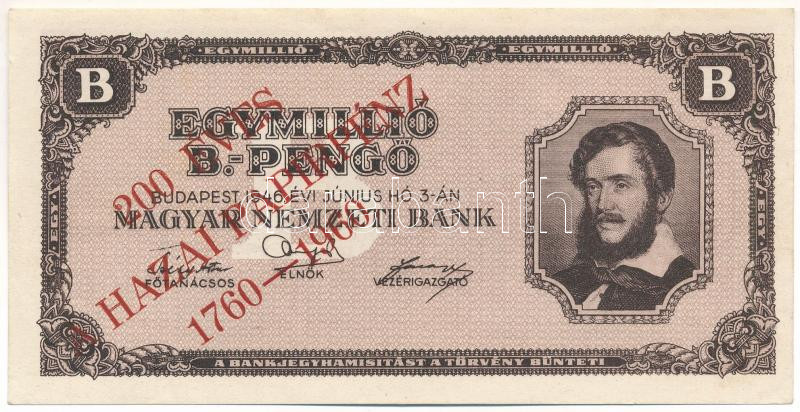 1946. 1.000.000BP "200 éves a hazai papírpénz 1760-1960" fel... https://www.darabanth.com/de/472-Fernauktion/472.0/Numismatik/Ungarische-Banknoten~2000008/1946-1000000BP-200-eves-a-hazai-papirpenz-1760-1960-felulbelyegzessel-TXF~II3195095