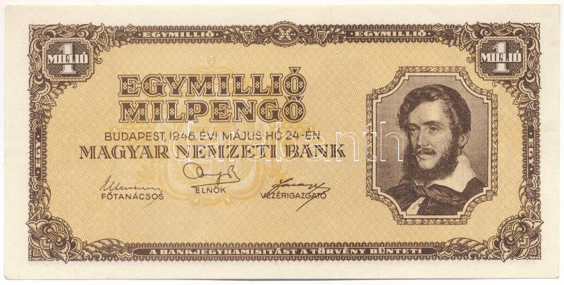 Adamo P31 https://www.darabanth.com/de/472-Fernauktion/472.0/Numismatik/Ungarische-Banknoten~2000008/1946-1000000MP-TAU-XF-tobb-kisebb-hajlas-Adamo-P31~II3196778
