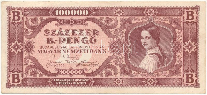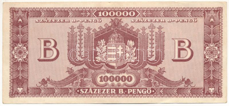 1946. 100.000BP T:F szép papír Adamo P36 https://www.darabanth.com/de/472-Fernauktion/472.0/Numismatik/Ungarische-Banknoten~2000008/1946-100000BP-TF-szep-papir-Adamo-P36~II3194951