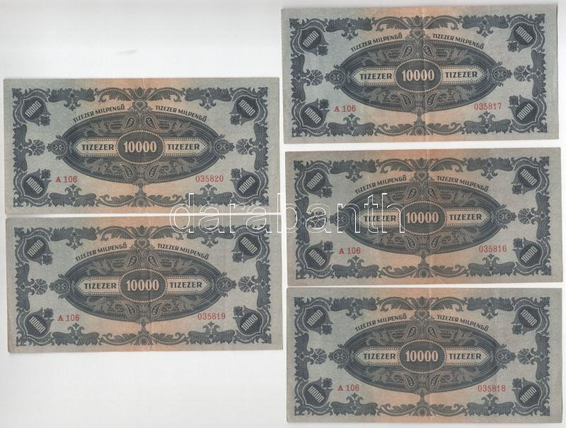 Beschreibung: 1946. 10.000MP (5x) sorszámkövetők "A 106 035816 - A 106 035820" T:F