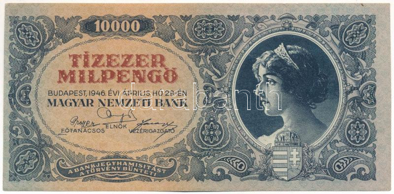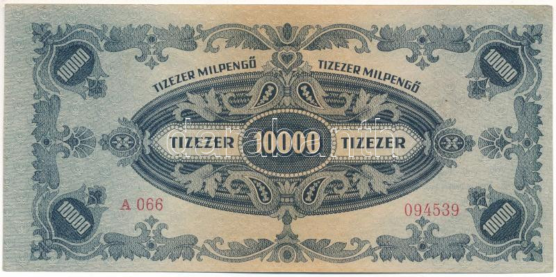 Adamo P29 https://www.darabanth.com/de/472-Fernauktion/472.0/Numismatik/Ungarische-Banknoten~2000008/1946-10000MP-kisse-eltolodott-hatlapi-nyomattal-TAU-Adamo-P29~II3196800