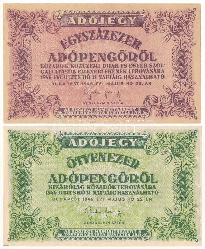 Beschreibung: 1946. 50.000AP-100.000AP sorszám nélkül (2xklf) T:F szép papír