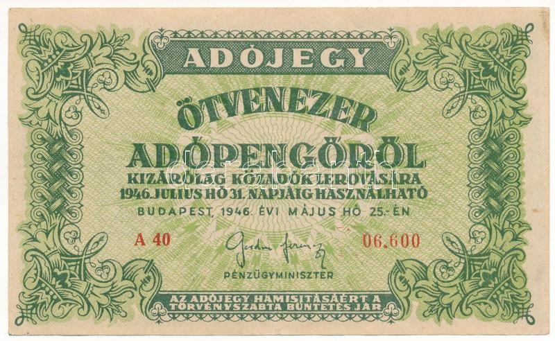 1946. 50.000AP "A 40 06.600" sorszámmal T:F erős papír