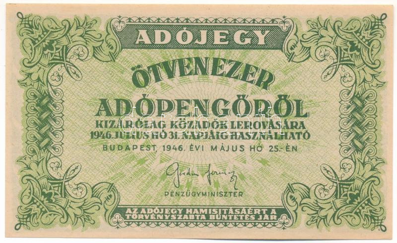 1946. 50.000AP sorszám-és vízjel nélkül T:UNC,AU