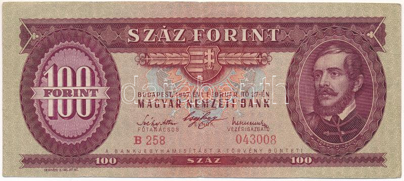 Hungary 1947. 100 Forint &qu... https://www.darabanth.com/de/472-Fernauktion/472.0/Numismatik/Ungarische-Banknoten~2000008/1947-100Ft-B-258-043008-TF-Hungary-1947-100-Forint-B-258-043008-CF-Adamo-F27~II3148359
