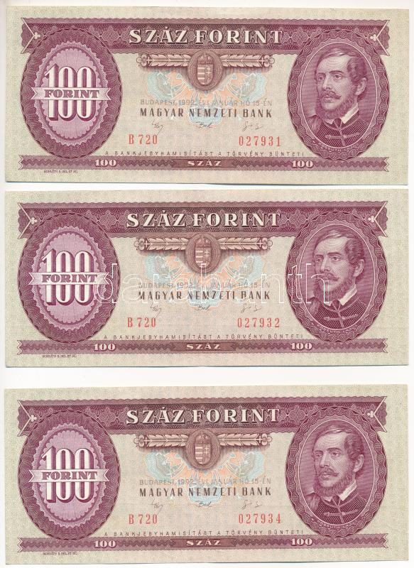 1992. 100Ft (3x) benne sorszámkövető pár és egy ugrásos sorszámkövetők... https://www.darabanth.com/de/472-Fernauktion/472.0/Numismatik/Ungarische-Banknoten~2000008/1992-100Ft-3x-benne-sorszamkoveto-par-es-egy-ugrasos-sorszamkovetok-B-720-027931-0279~II3129102
