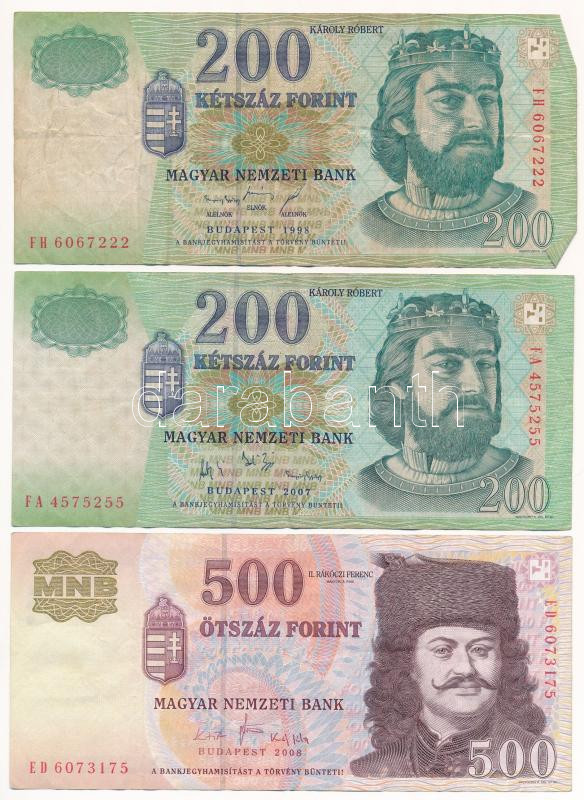 Beschreibung: 1998. 200Ft "FH" + 2007. 200Ft "FA" + 2008. 500Ft "ED" T:F