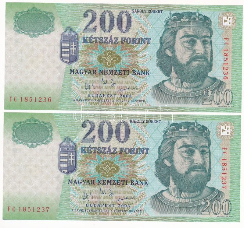 Beschreibung: 2003. 200Ft (2x) sorszámkövetők "FC 1851236 - FC 1851237" T:UNC