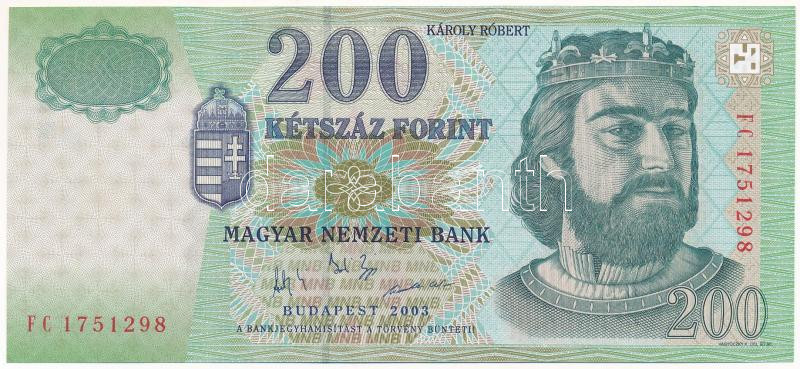 2003. 200Ft "FC 1751298" T:UNC https://www.darabanth.com/de/472-Fernauktion/472.0/Numismatik/Ungarische-Banknoten~2000008/2003-200Ft-FC-1751298-TUNC~II3201492