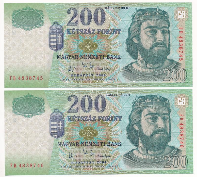 2004. 200Ft (2x) sorszámkövetők "FB 4838745 - FB 4838746" T:... https://www.darabanth.com/de/472-Fernauktion/472.0/Numismatik/Ungarische-Banknoten~2000008/2004-200Ft-2x-sorszamkovetok-FB-4838745-FB-4838746-TUNC~II3201518