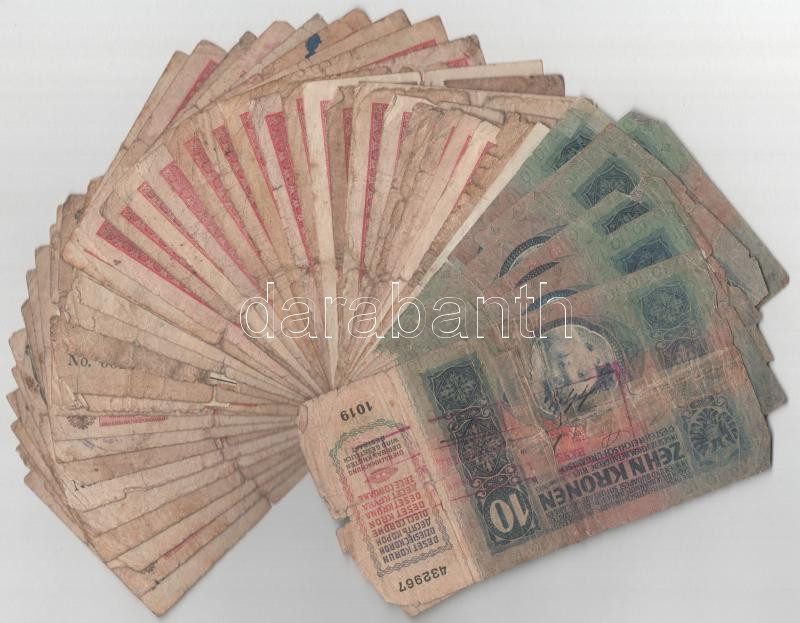 46db-os vegyes, gyenge tartású korona bankjegy tétel, mind valamilyen ... https://www.darabanth.com/de/472-Fernauktion/472.0/Numismatik/Ungarische-Banknoten~2000008/46db-os-vegyes-gyenge-tartasu-korona-bankjegy-tetel-mind-valamilyen-felulbelyegzessel-kozt~II3200215