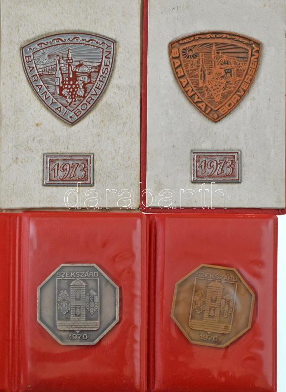 1973. "Baranyai Borverseny" plakett, dísztokban (2xklf) + 1976. "Szekszárd / XV. Országos Borverseny II Díj" bronz plakett, dísztokban + "Szekszárd / XV. Országos Borverseny III Díj" bronz plakett, dísztokban T:AU