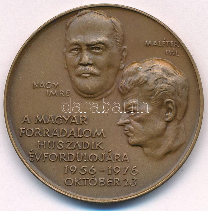 1976. "A Magyar Forradalom huszadik évfordulójára - Nagy Imre, Maléter Pál / In honour to the Hungarian Revolution Oktober 23. 1956" kétoldalas bronz emlékérem (38mm) T:AU