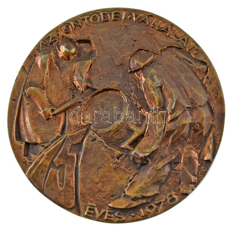 1978. "Öntödei Vállalat - 15 éves - 1978 / Acélöntő és Csőgyár - Eger, Kisvárda, Komárom, KÖVAC, Mohács, ÖFAC, Sopron, Szeged, Újpest" kétoldalas bronz emlékérem (75mm) T:AU