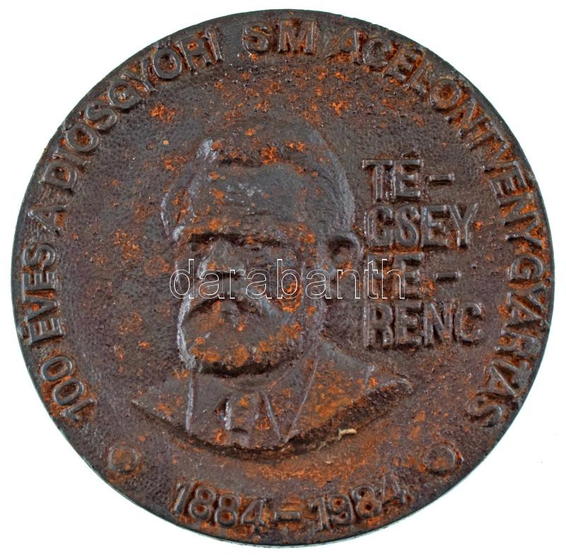 1984. "Técsey Ferenc - 100 éves a Diósgyőri SM Acélöntvénygyártás" nagyméretű, egyoldalas Fe emlékplakett (117mm) T:XF,VF oxidáció