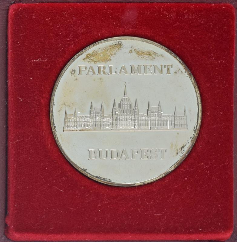 1989. "A Magyar Népköztársaság Országgyűlése / Parlament- Budapest" Ag emlékérem, eredeti dísztokban (28,26g/0.925/40mm) T:UNC,AU (eredetileg PP) patina