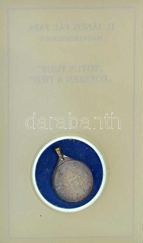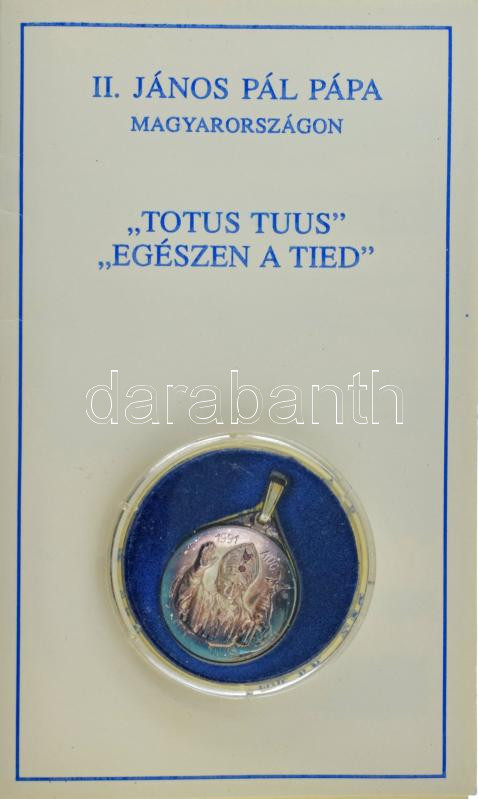 1991. "II. János Pál pápa Magyarországon" kétoldalas Ag emlékérem füllel, előlapján 2db rubinnal díszítve, tanúsítvánnyal, eredeti díszkiadásban (0,999/~29mm) T:AU patina