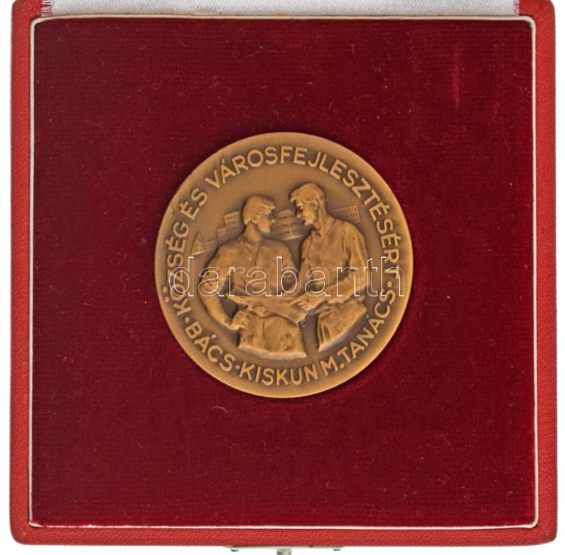 ~1960-1970. "Község- és városfejlesztésért - Bács-Kiskun M. Tanács" egyoldalas, öntött bronz plakett, eredeti tokban (50mm) T:AU