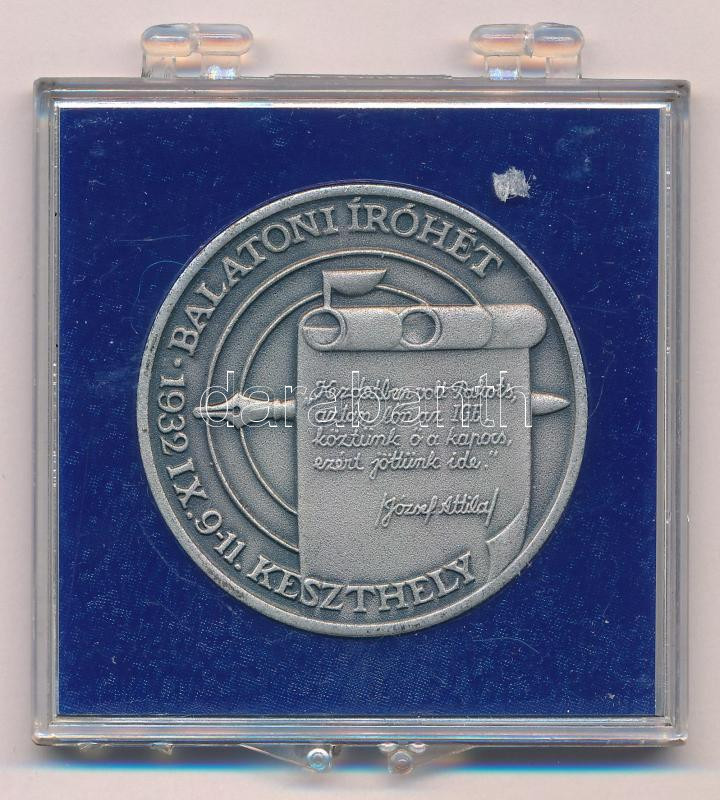 Bogár Lívia (1957-) 1982. "Éremgyűjtők Csoportja Keszthely / Balatoni Íróhét 1932. IX. 9-11." kétoldalas ezüstpatinázott bronz emlékérem plomba nélküli ÁPV tokban (42,5mm) T:AU